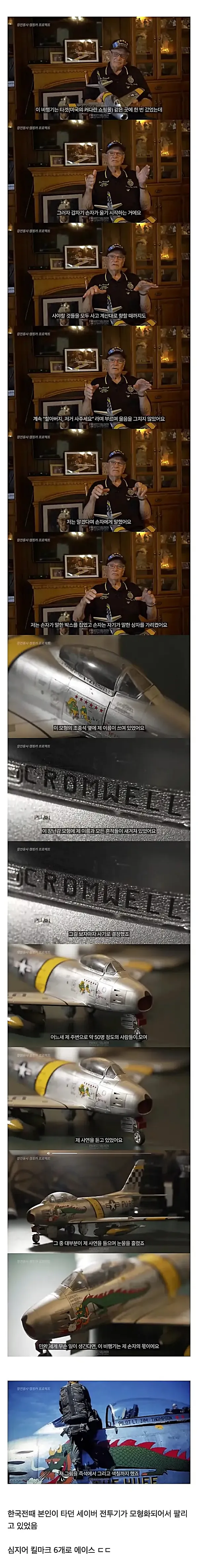 손자가 떼쓴 덕분에 한국전에서 자신이 몰던 전투기를 다시 만난 노장 작성자 정보 하프라인 작성 작성일 2025.12.25 12:37 컨텐츠 정보 240,453 조회 목록 본문 한국전 이후 나사에서 30년 근무한 그의 인생 이야기 : https://www.koreanwarvetsla.org/stories/lescromwell 이건 운명이라고밖엔.... 관련자료 댓글 0 등록된 댓글이 없습니다. 로그인한 회원만 댓글 등록이 가능합니다. 목록