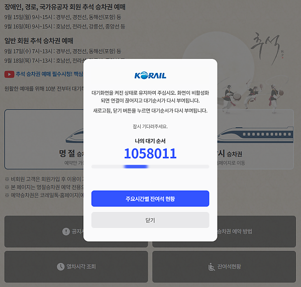 30분동안 열심히 트라이해서 들어가니 100만 대기군단 행렬