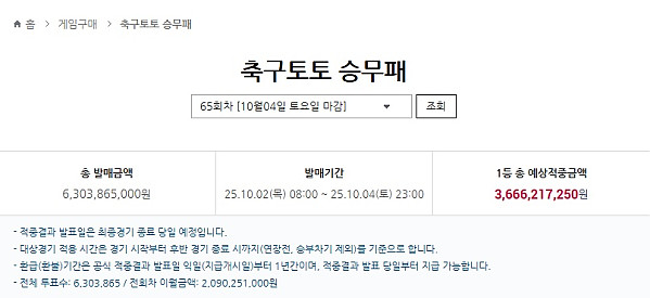 이월된 토토 승무패 1등상금이 36.6억이네요