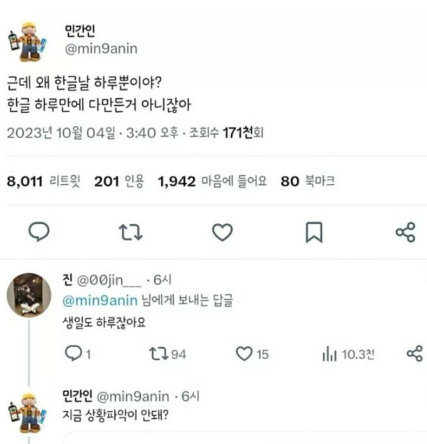한글날도 피할 수 없는 논란 작성자 정보 토렉스 작성 작성일 2025.10.09 12:56 컨텐츠 정보 439,312 조회 목록 본문 이건 이도 선생님이 직접 나와서 설명해야.. 관련자료 댓글 0 등록된 댓글이 없습니다. 로그인한 회원만 댓글 등록이 가능합니다. 목록