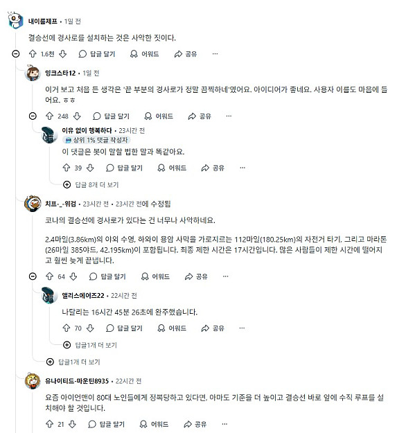 철인3종 경기 결승선에 경사로를 배치하면 안되는 이유 작성자 정보 토렉스 작성 작성일 2025.10.15 14:43 컨텐츠 정보 279,642 조회 목록 본문 어르신 힘드시다 관련자료 댓글 0 등록된 댓글이 없습니다. 로그인한 회원만 댓글 등록이 가능합니다. 목록