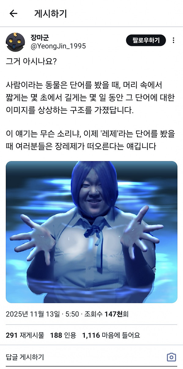 레제가 아닌 라지 작성자 정보 하프라인 작성 작성일 2025.11.15 12:06 컨텐츠 정보 222,182 조회 목록 본문 못 본 사람이 존재해서는 안되는 것이겠지요 관련자료 댓글 0 등록된 댓글이 없습니다. 로그인한 회원만 댓글 등록이 가능합니다. 목록