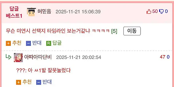 미연시 선택지를 잘못 눌렀다... 작성자 정보 하프라인 작성 작성일 2025.11.25 12:33 컨텐츠 정보 272,314 조회 목록 본문 ...에라이 관련자료 댓글 0 등록된 댓글이 없습니다. 로그인한 회원만 댓글 등록이 가능합니다. 목록