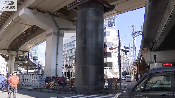 철 파이프는 신미도스지 고가도로 본체와는 접촉하지는 않았지만, 고가 부분을 포함한 일부 구간에서 통행이 금지된 상태입니다.
